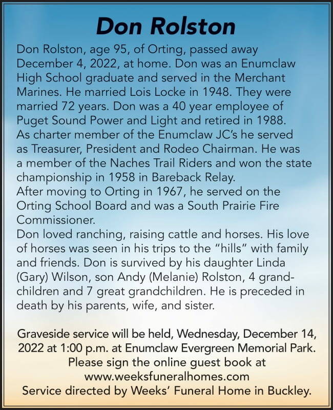 Don Rolston died Dec. 4, 2022 at the age of 95.