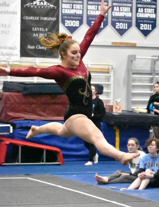 The meet, Enumclaw’s only home contest of the season, was staged in the Peak Gymnastics facility.