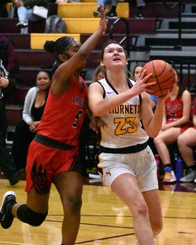 Enumclaw scoring: Bella Firnkoess 13, Gwenny Harderson 10, Natalie DeMarco 9, Kalee Swanson 7, Marissa Lindberg 6, Charlee Torgison 3, McKinley Rubin 1.