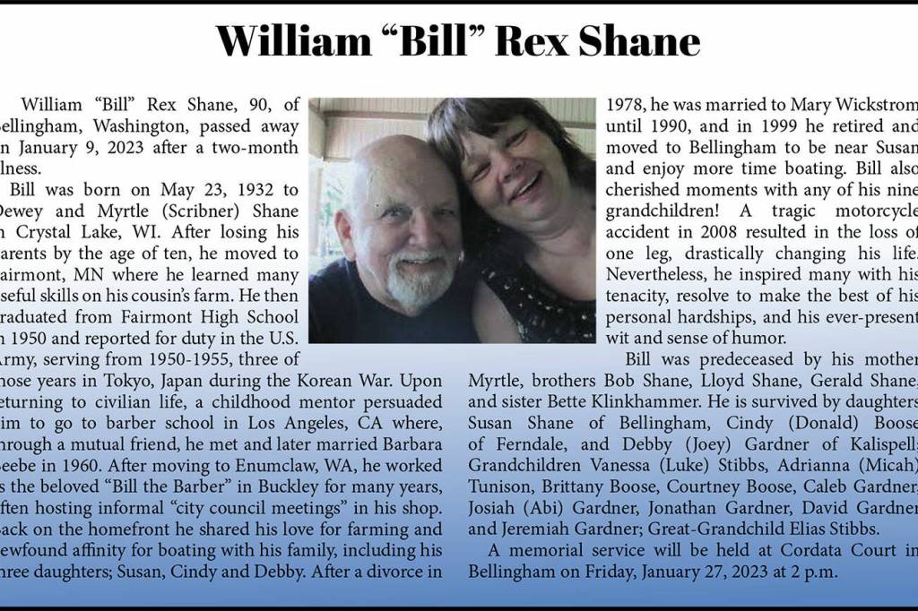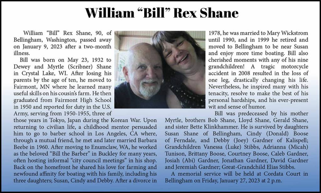 William “Bill” Rex Shane died Jan. 9, 2023, at the age of 90.