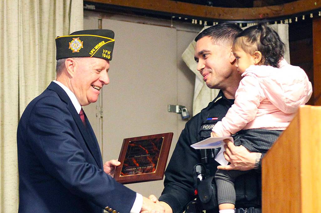 Also honored by the VFW were Enumclaw officer Trevor Pourchot, dispatcher July Kenezuroff, and firefighter Ryan Rodenberg.