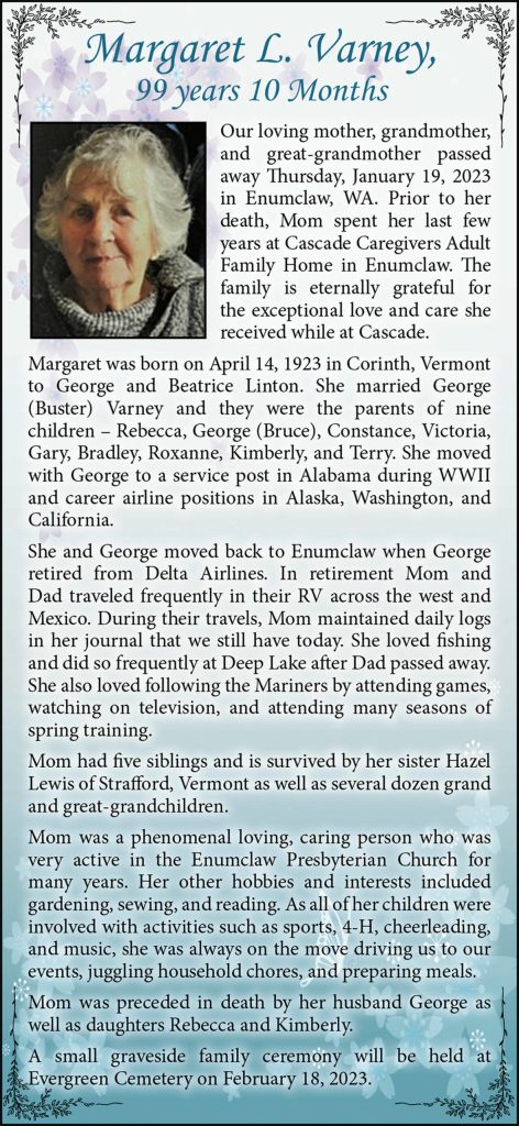 Margaret L. Varney died Jan. 19, 2023, at the age of 99.