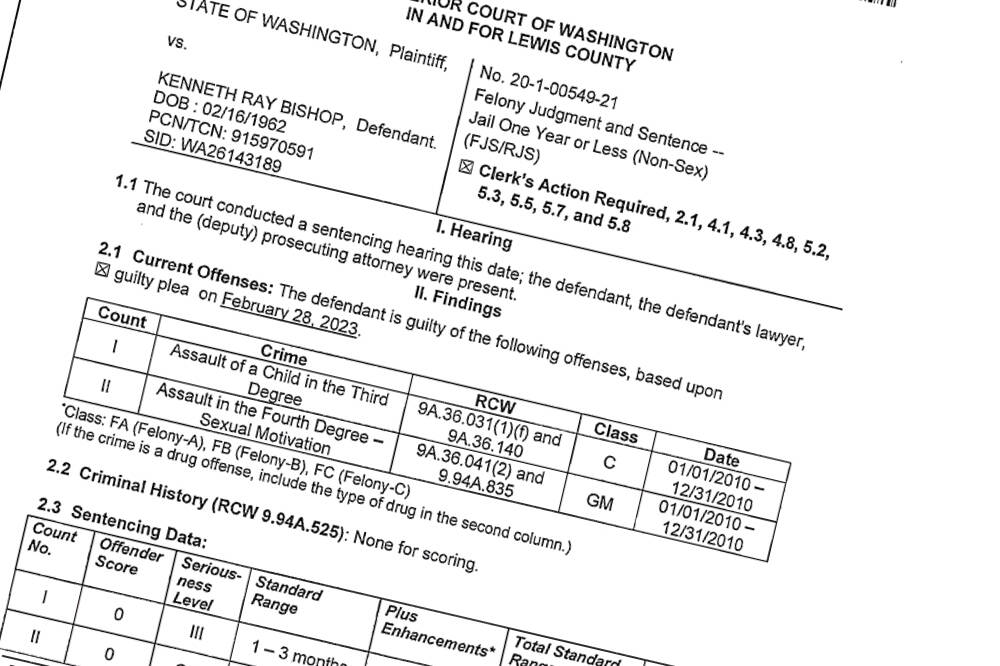 Enumclaw resident Kenneth Ray Bishop has pled guilty to sexual assault of a child nearly three years after being charged in Lewis County.