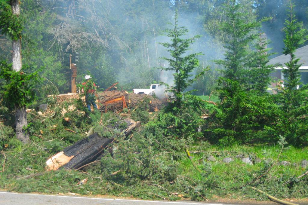 Last night’s lightning strike hit a Black Diamond tree, sending up flames and eventually closing Robert’s Drive for a few hours.