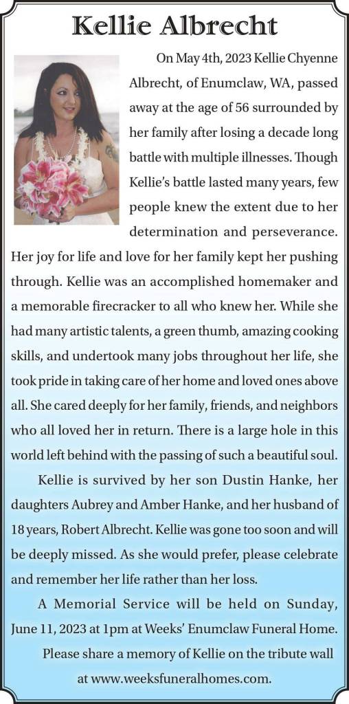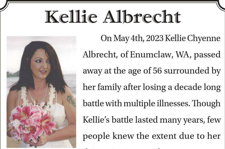 Kellie Albrecht died May 4, 2023 at the age of 56.