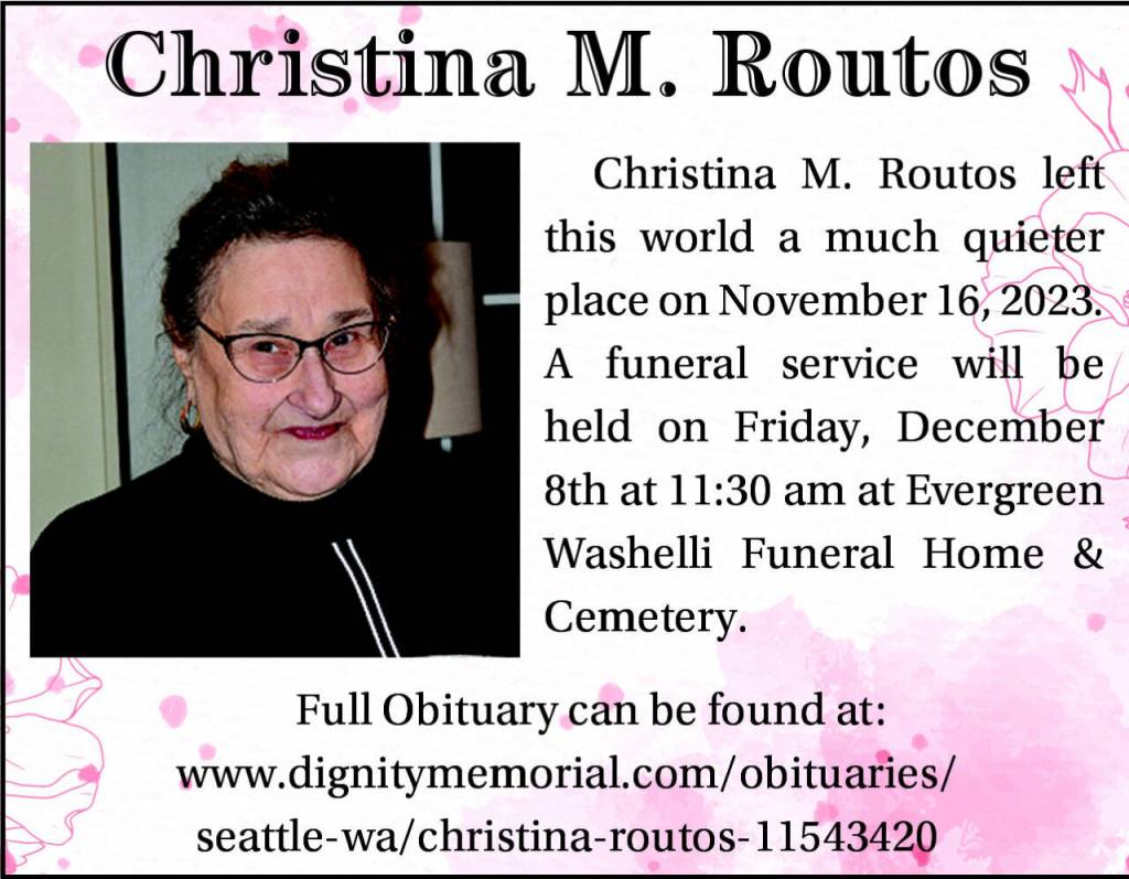 Full Obituary can be found at: www.dignitymemorial.com/obituaries/seattle-wa/christina-routos-11543420