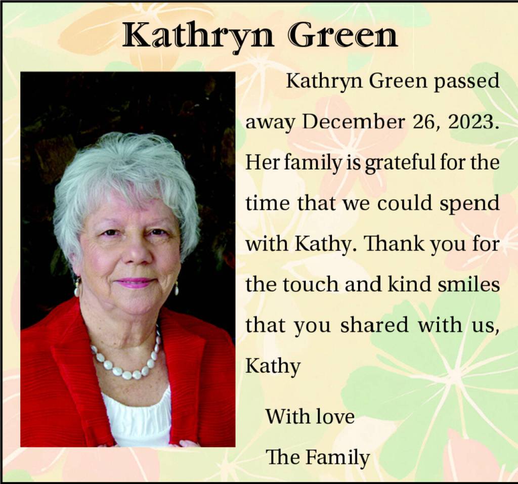 Her family is grateful for the time that we could spend with Kathy. Thank yhou for the touch and kind smiles that you shared with us, Kathy.