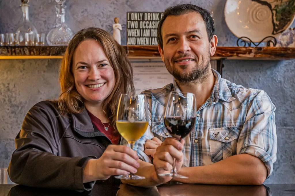 Sandi and Salvador Moreno have been operating Leony’s Cellars out of the bright blue building on Railroad Street for about five years, though they’ve been making wine for about a decade.
