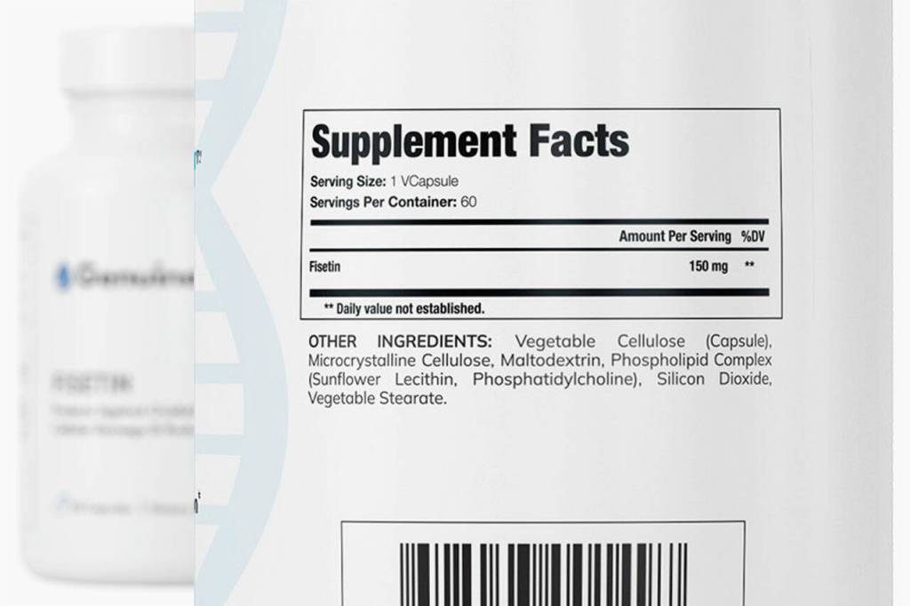 A single bottle of GenuinePurity Fisetin contains 60 dietary capsules. One capsule has 150mg of Fisetin; the formula’s recommended dose is two capsules daily with a glass of water.