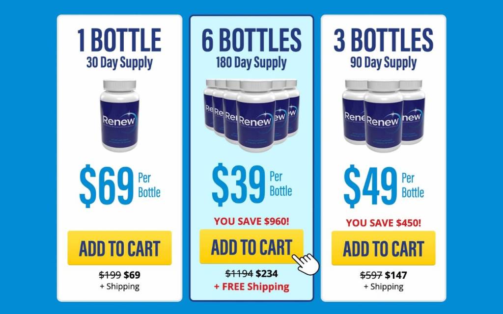 For a more extended experience and enhanced savings, consider the 90-day supply option with 3 bottles priced at $49 per bottle. This package offers significant savings, amounting to a total of $147, making it an attractive choice for those looking to continue benefiting from Renew over a more extended period. The savings of $450 make this option both economical and convenient. Shipping charges will apply to this bundle.