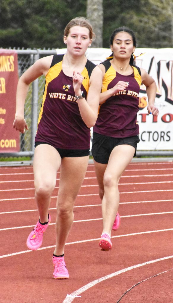 White River event winners: Vivian Kingston 400 meters; Emma Tomlinson 800 meters, high jump and 1,600 meters; Paeton Poelman 3,200 meters; Trista Turgeon 100-meter hurdles and 300-meter hurdles; 4×100 relay (Charlee Sproed, Belle Knauss, Cheyanne Saetern, Taylor Simon); Mackenzie Cabrera shot put and discus; Grace Galaviz javelin; Maci Roach pole vault; Sproed long jump.