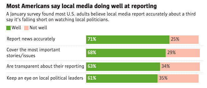 Americans don’t want that dystopia. Pew found most of them appreciate local journalism informing their communities and want it to improve.