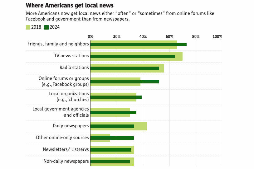 By early 2024 that had flipped, with 33% now getting local news from dailies and 35% from government.