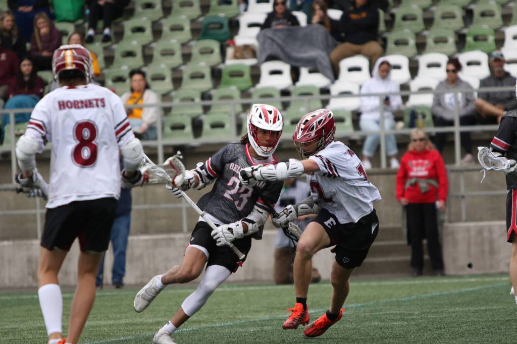 In the state finale, Enumclaw and Bellingham were tied 3-3 after one quarter of play. Enumclaw used five goals in the second period to build a lead, then clamped down defensively to secure a second championship.