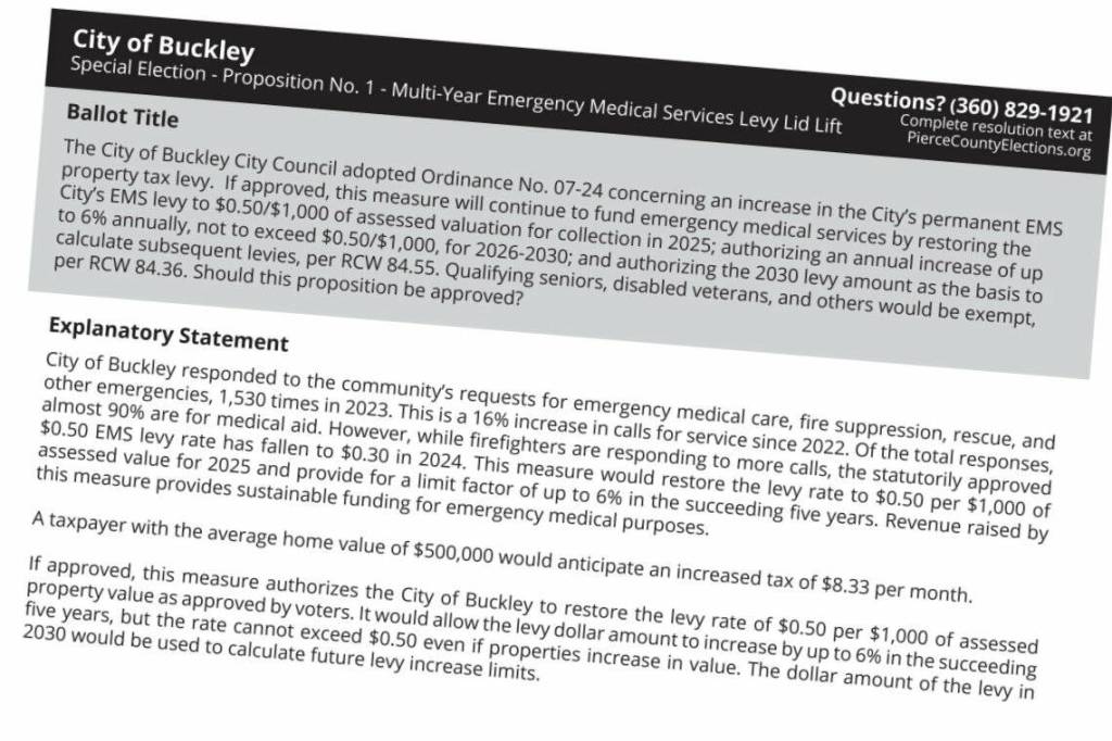 If Buckley residents don’t have their primary ballots, they will soon — and on it is a measure to lift the city’s EMS levy.