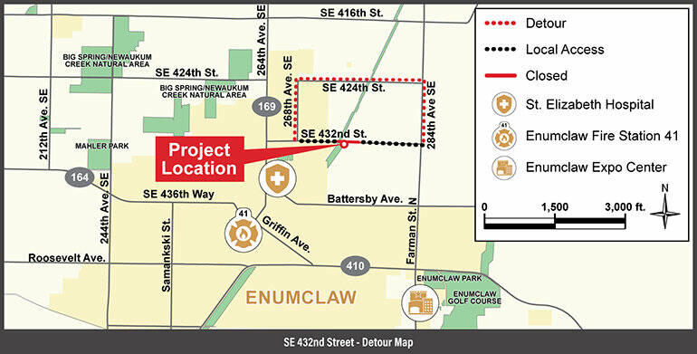 With 432nd closed, recommended detours include using 268th Ave., 434th St., and 284th Ave.