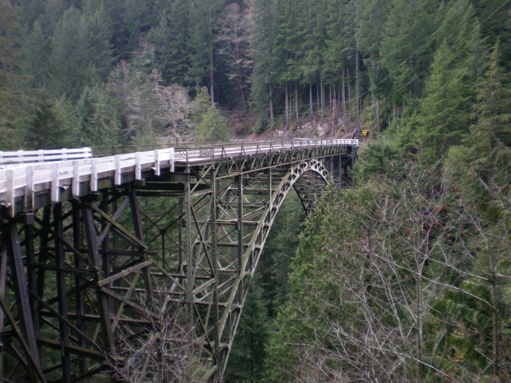The single-lane bridge is located at milepost 11.5, three miles south of Carbonado.