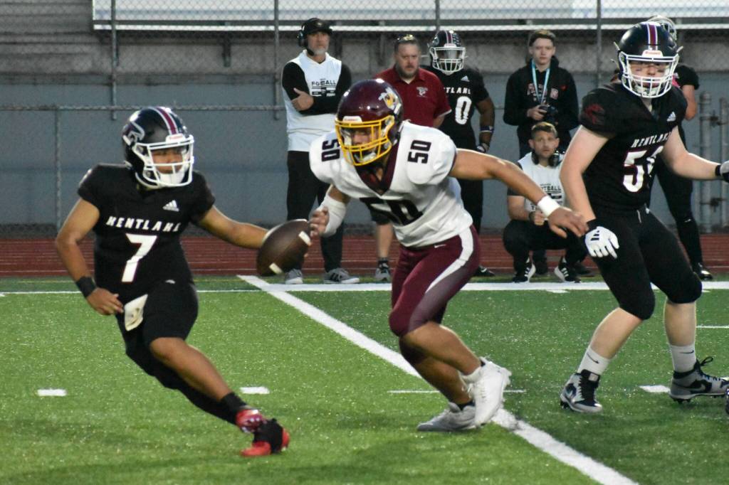 White River was the first to post its dominance, playing a rare Thursday night game and defeating Kentlake 54-7. The team was boosted by four touchdown passes by quarterback Tristan Waterman, two of those going to Tate Bowen and one each to Jacob Scheidt and Hunter Maris. In addition, the Hornets had a pair of rushing TDs from Mason Locke and one each by Waterman and AJ Cruz.