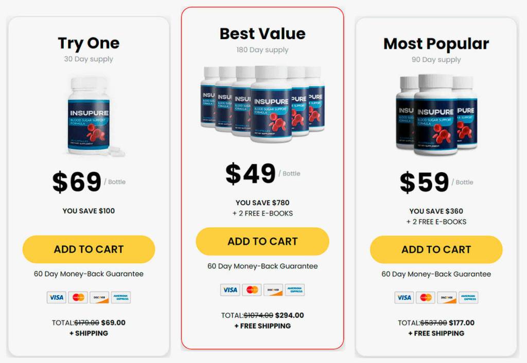 With no in-store opportunities to purchase InsuPure, consumers must visit the official website to order this blood sugar supplement. The website offers the best deals for consumers who order more than one bottle at a time.