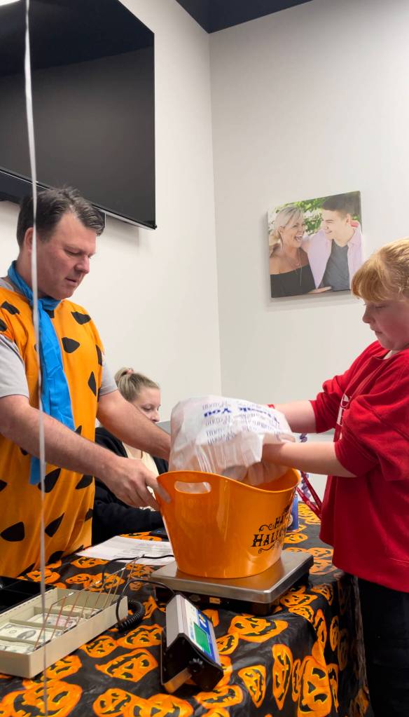 Every year on Nov. 1, the local business buys back literal tons of candy at $2 per pound, plus an extra dollar if the kids come in a costume, and another if they make a canned food donation.