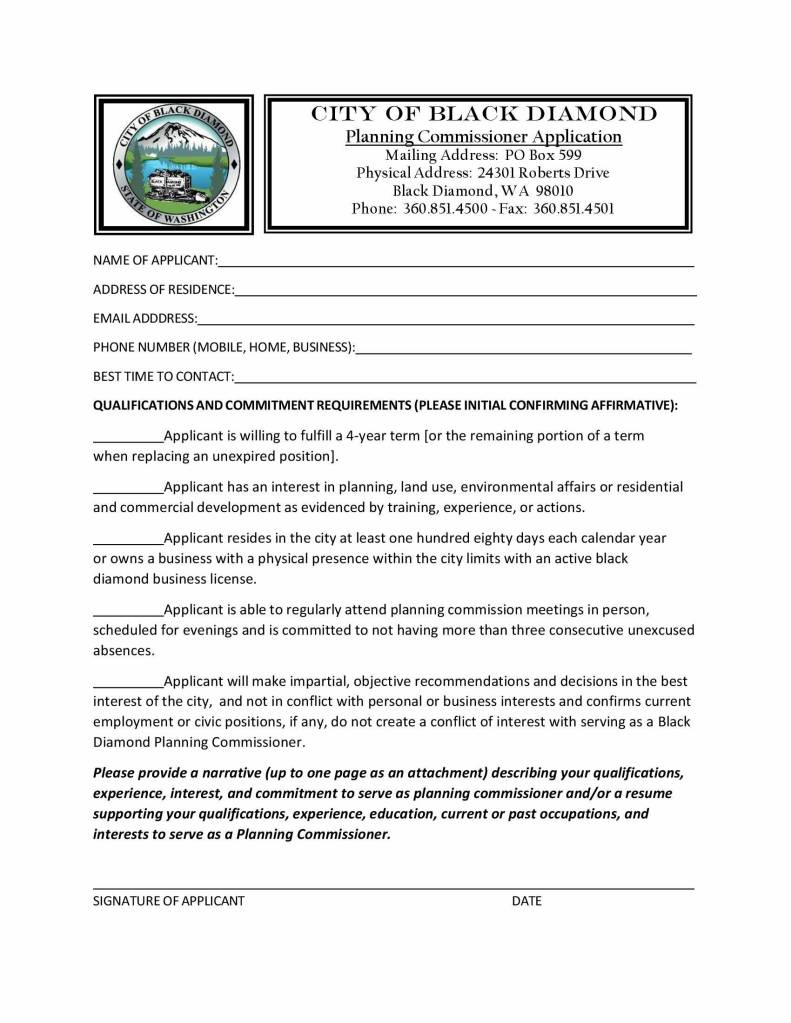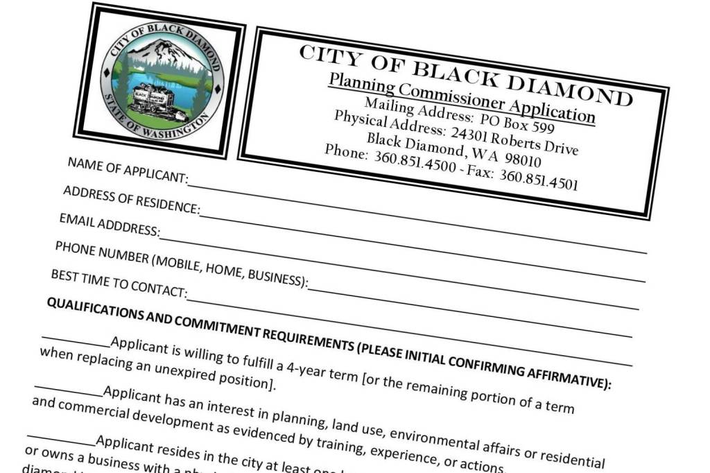 Application forms may be found on the City’s website http://www.blackdiamondwa.gov/city-clerk/pages/forms-applications and on the “Public Notices” webpage.