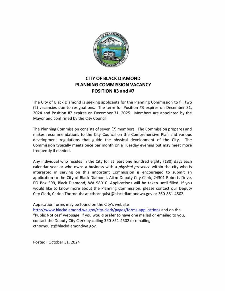 Black Diamond posts Planning Commission vacancies