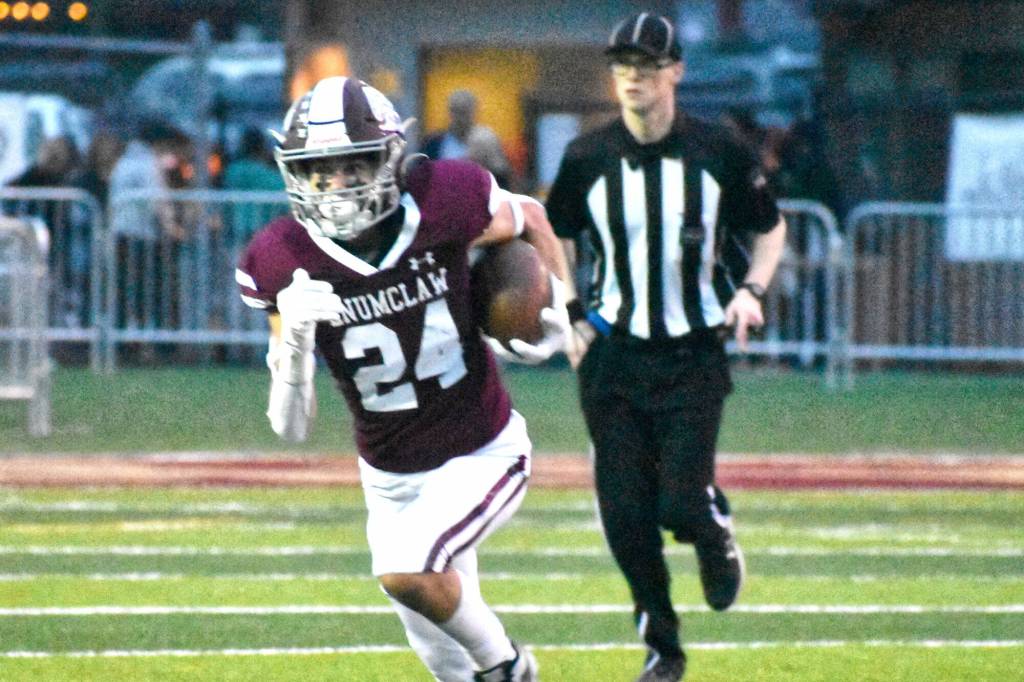 Enumclaw: Senior Colton Paulson was named Co-Defensive Player of the Year and was a first team wide receiver. Also collecting a top honor was senior Louis Chevalier who was voted Co-Offensive Player of the Year.