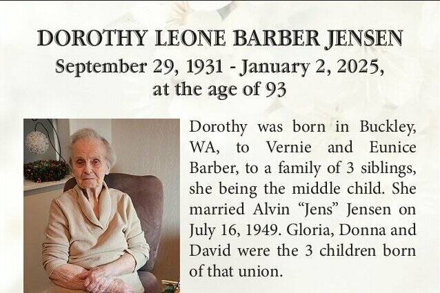 Dorothy was born in Buckley, WA, to Vernie and Eunice Barber, to a family of 3 siblings, she being the middle child.
