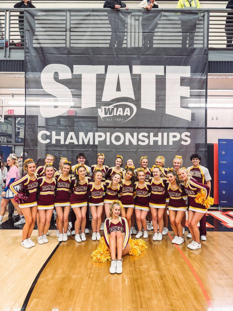 The Enumclaw program is no stranger to collecting honors at recent state cheer championships. The Hornets took the 2A/4A Medium title in 2022; the 2A/3A/4A Game Day Large championship, also in 2022; and the 2A/4A Large title in 2020.