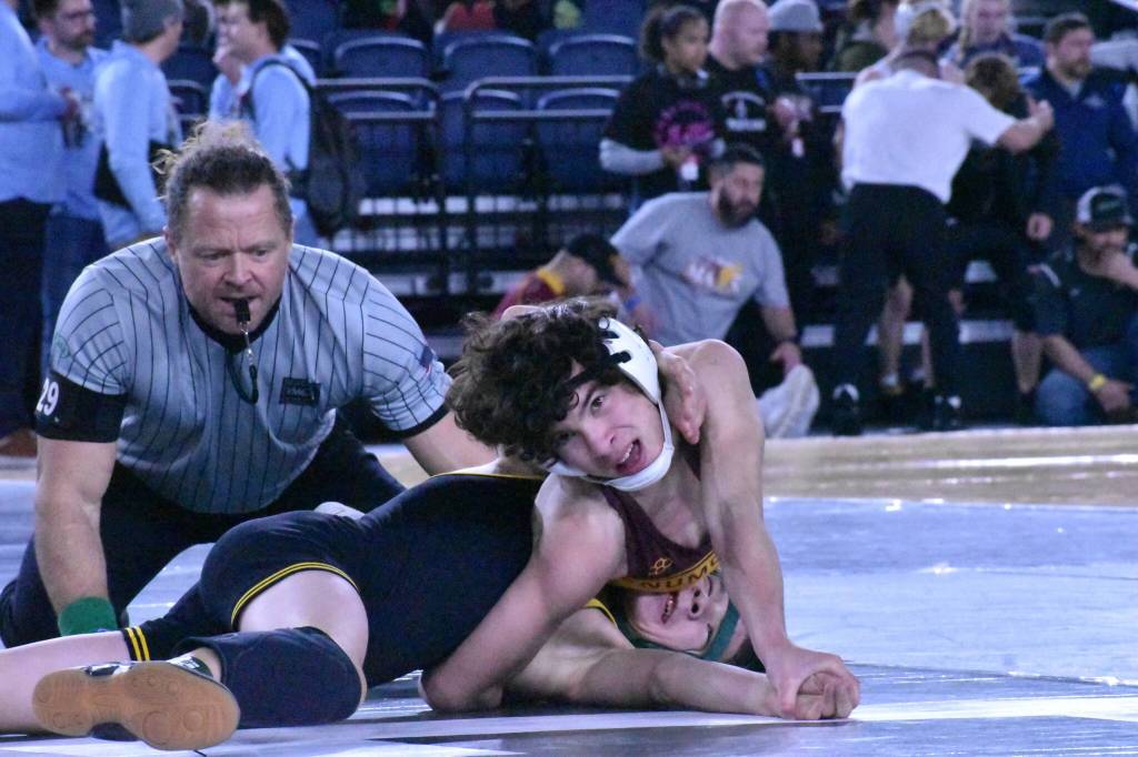 Representing Enumclaw High were seniors Caleb Grantham in the 138-pound weight class and Mason Elder, who wrestled at 157; juniors Gaven Gemmell at 106 pounds and Eddie Cormier-Higgins at 138; sophomores Romeo Gwerder at 132 and Cole Schumacher at 150; and freshman Bo Bruhn at 144.