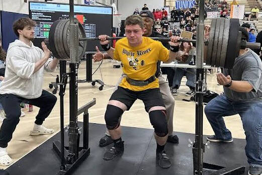 Setting new state records were Madeline Cameron who competed in the 123-pound class and deadlifted 285 pounds; Lilly Hyatt in the 181-pound class who deadlifted 375 pounds; and Rylan Heifner in the 198-pound class who squatted 515 pounds. Additionally, Hyatt established a new state mark with an overall total of 800 pounds in her lifts.