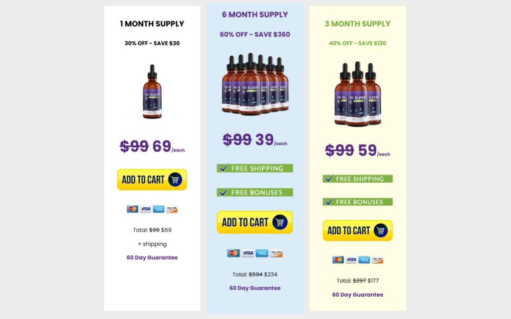 Yu Sleep offers three purchasing options designed to accommodate different commitment levels and budget considerations. The pricing structure provides significant savings for longer-term commitments, reflecting the supplement’s effectiveness when used consistently over extended periods.