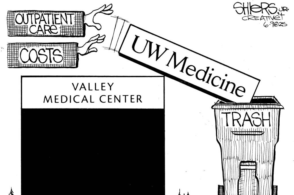 Frank Shiers, Jr. is a longtime King County resident and has drawn political cartoons for over forty years. He creates at least four cartoons a week, which are published in a dozen newspapers.