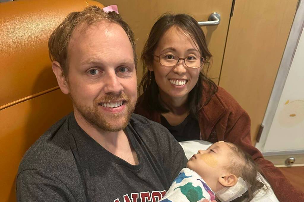 The two-year-old from Enumclaw was losing her balance, Aya was texting her father, Derek; she wasn’t using her right side; her right eye looked different.