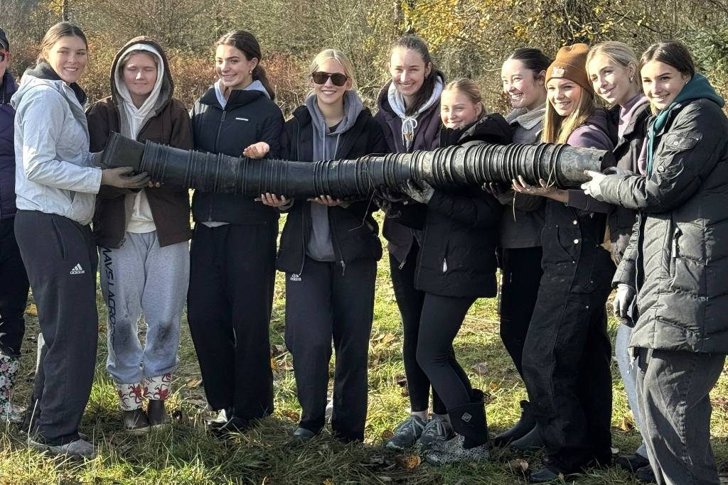 The team was on hand Nov. 8, volunteering as part of an ongoing effort by the Pierce Conservation District. The district purchased the former farmland, sitting along Pioneer Way between South Prairie and Orting, and has been rehabilitating the creek for native salmon.