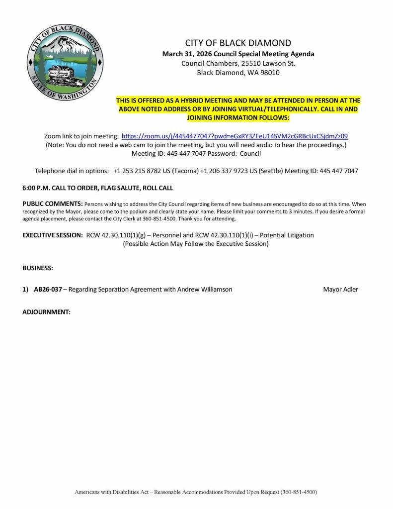 1) AB26-037 – Regarding Separation Agreement with Andrew Williamson Mayor Adler