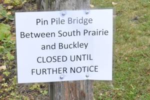 A tree fell across the popular trail, damaging a relatively new bridge between Buckley and South Prairie.