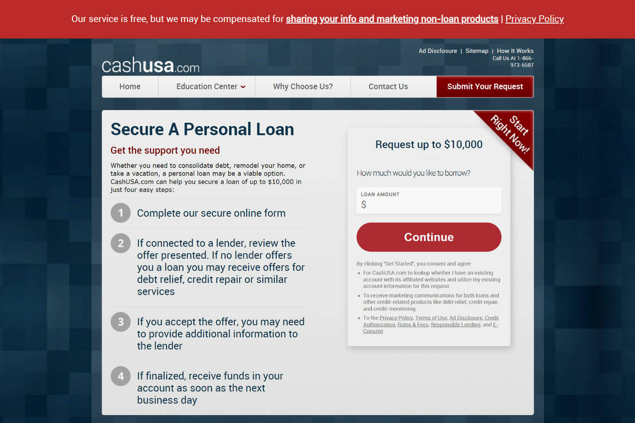 CashUSA allows you to merge your debt, modernize your house, or spend a great time on vacation, although you have a bad credit history. So, you can get a loan of whooping $10,000 via four super-simple steps. As soon as you complete your online form, you should contact a lender and accept the proposal to match your needs. Finally, you will receive your funds directly into your account.