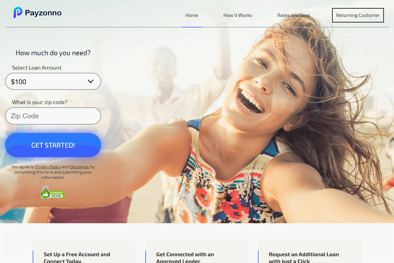 Payzonno offers its services for free. As soon as you submit your info to Payzonno, this highly-rated company gets various lenders that compete on your behalf. Once you check all the offers, you can pick the loaner with the best fees and terms.