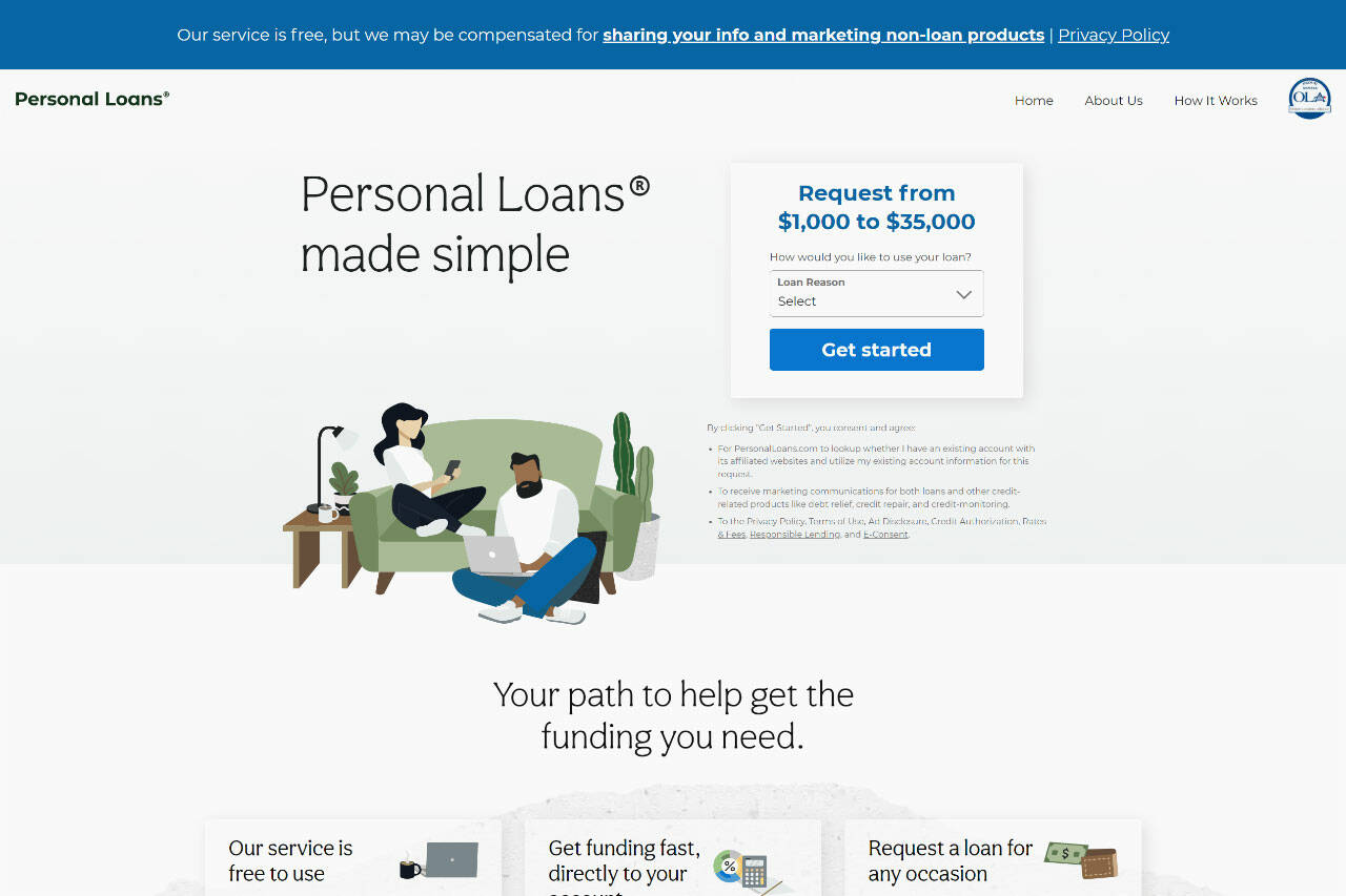 Using PersonalLoans, qualified customers can borrow between $1,000 and $35,000. It provides a money lending service to people after a loan free of charge, and you won’t come onto any hidden obligations and fees. Once you add the required info into the PersonalLoans online form, you can immediately see all the offers from all interested lenders.