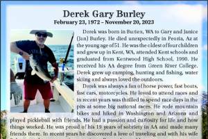 Derek Gary Burley died Nov. 20, 2023, at the age of 51.