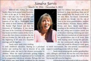 Sandra Marie Jarvis died Dec. 3, 2022, at the age of 78.
