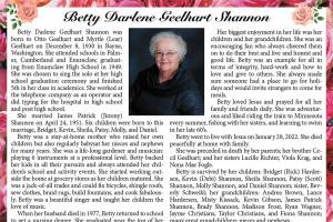 Betty Darlene Geelhart Shannon died Jan. 28, 2022, at the age of 91.
