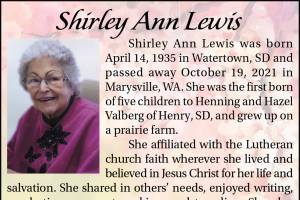 Shirley Ann Lewis died Oct. 19, 2021, at the age of 86.