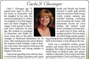 Carla J. Clevenger died April 12, 2021, at the age of 74.