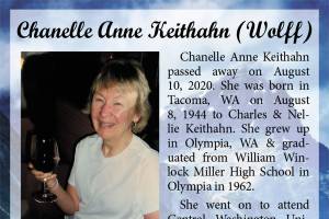 Chanelle Anne Keithahn (Wolff) died Aug, 10, 2020, at the age of 76.