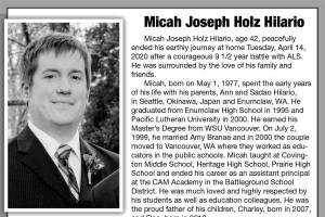 Micah Joseph Holz Hilario died April 14 at the age of 42.