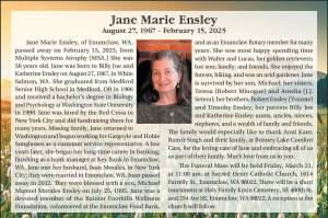 Jane Marie Ensley died Feb. 15, 2025, at the age of 56.