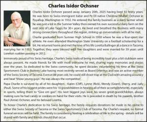Charles Isidor Ochsner died Jan. 20th, 2025 at the age of 92.