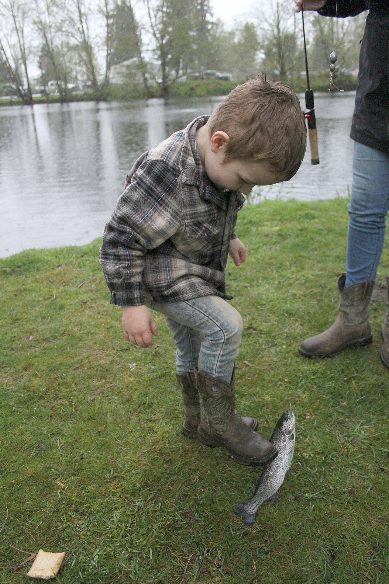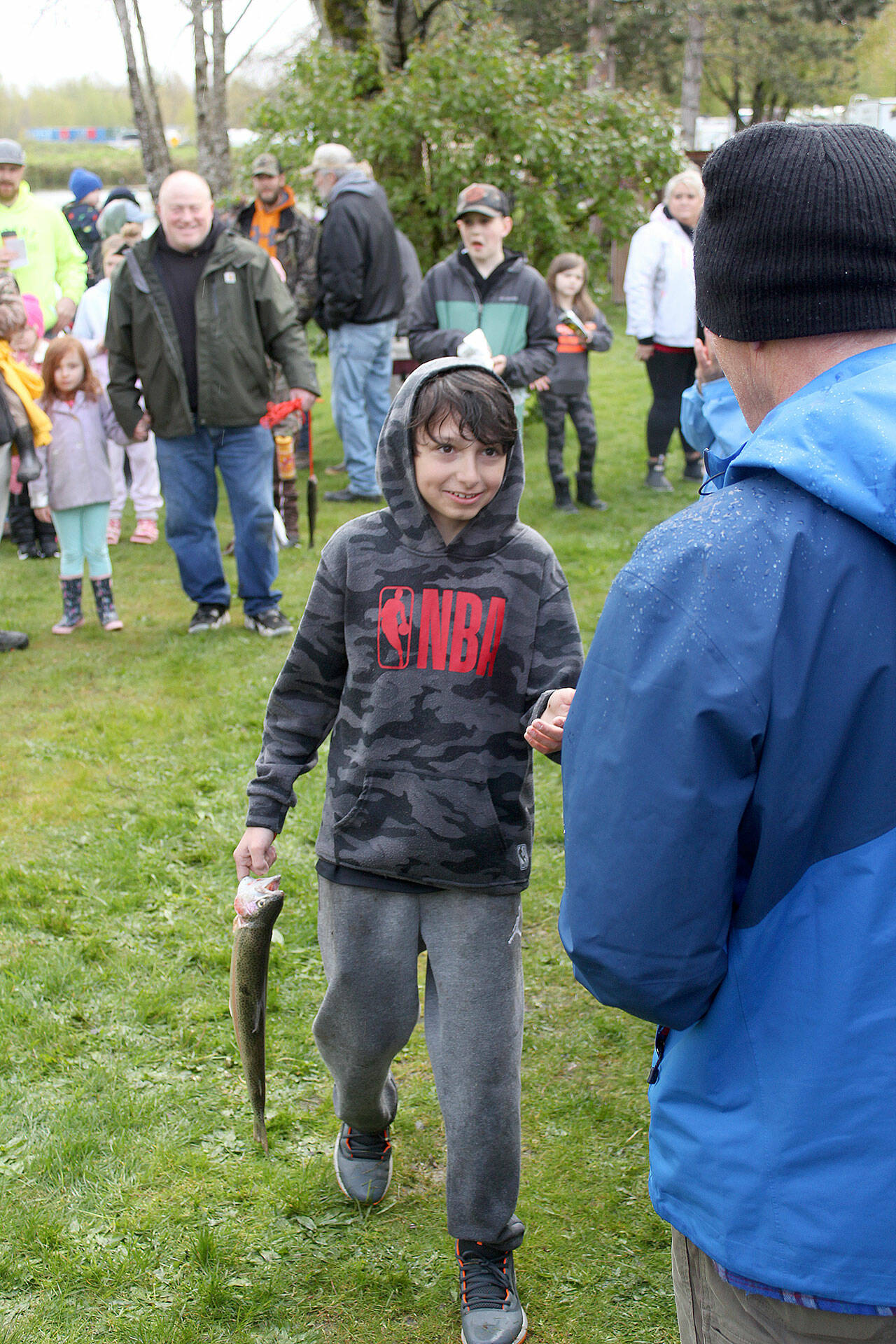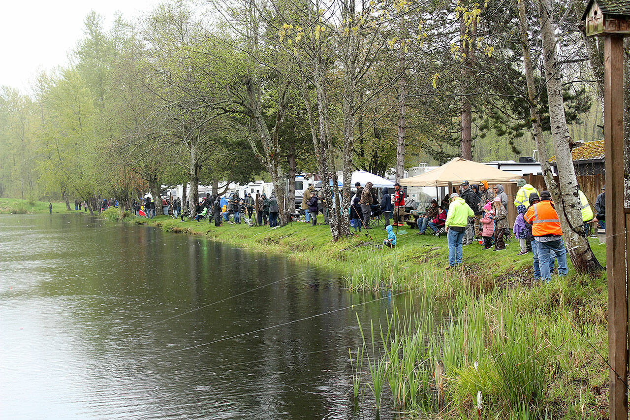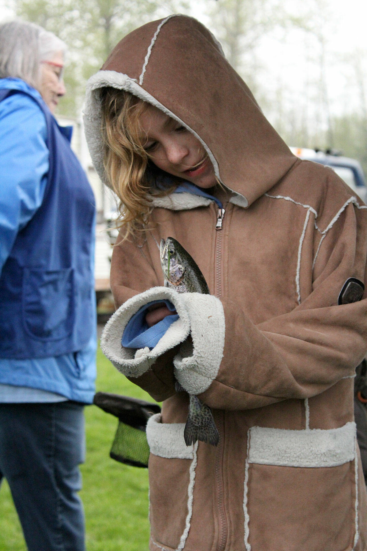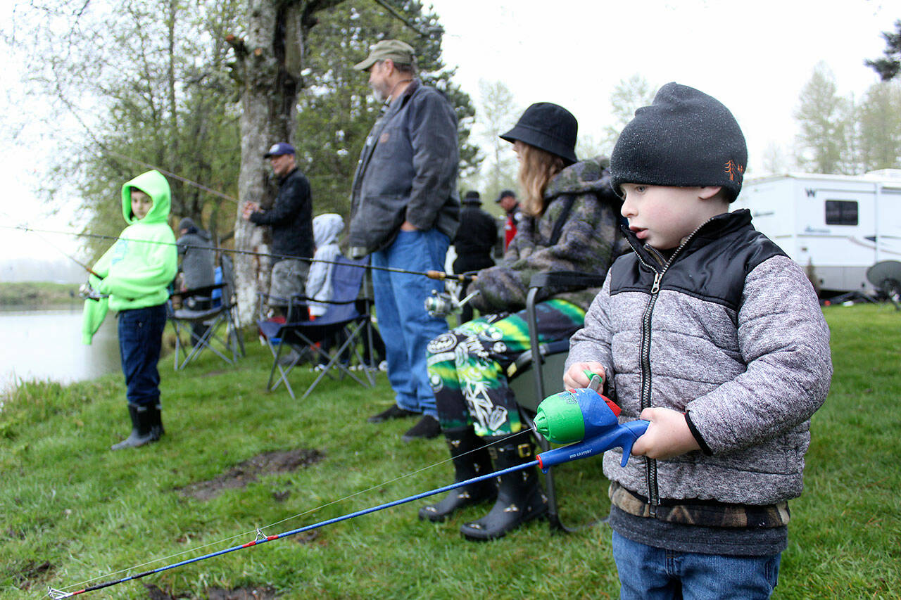 Young kids (and their parents) gathered at Uncle John’s pond outside Buckley last weekend to cast their lines and catch some fish.